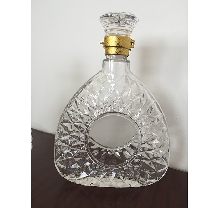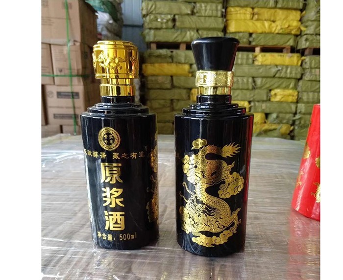 蒙砂酒瓶是在制品玻璃上,粘附一定大小面積的玻璃色釉粉,玻璃瓶廠經(jīng)過580~600℃的高溫烘烤,使玻璃色釉涂層凝結在玻璃外表,并顯現(xiàn)出具有與玻璃主體不同顏色的一種裝飾辦法。粘附玻璃色釉粉,可用排筆涂刷,亦可用膠輥滾涂。經(jīng)過絲印加工,能夠得到蒙砂面的樓空圖案。 其辦法是:在玻璃制品外表上,絲印一層由阻熔劑構成的圖案紋樣。